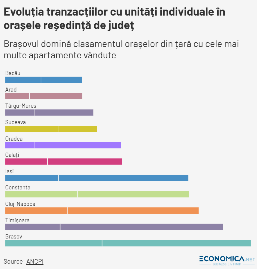 Datele detaliate pe orașe sunt disponibile doar din mai 2025. Din acest motiv, nu există comparații directe cu începutul anului 2025. Cu toate acestea, pot fi analizate tranzacțiile din marile orașe. În București, cele mai multe apartamente s-au vândut în sectorul 3. Aici au fost înregistrate aproximativ 1.400 de tranzacții. Sectorul 4 și sectorul 6 urmează în clasament. Fiecare dintre acestea a depășit 1.000 de apartamente vândute. În afara capitalei, Brașovul conduce clasamentul tranzacțiilor. Aici au fost vândute 645 de apartamente în ianuarie și februarie. În Timișoara s-au înregistrat 571 de tranzacții. În Cluj-Napoca au fost vândute 507 apartamente. Datele confirmă o scădere generală a pieței imobiliare. Specialiștii avertizează că tendința ar putea continua în perioada următoare.